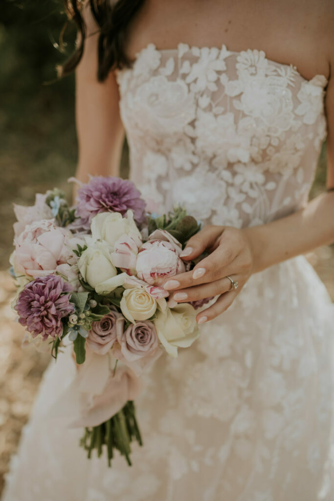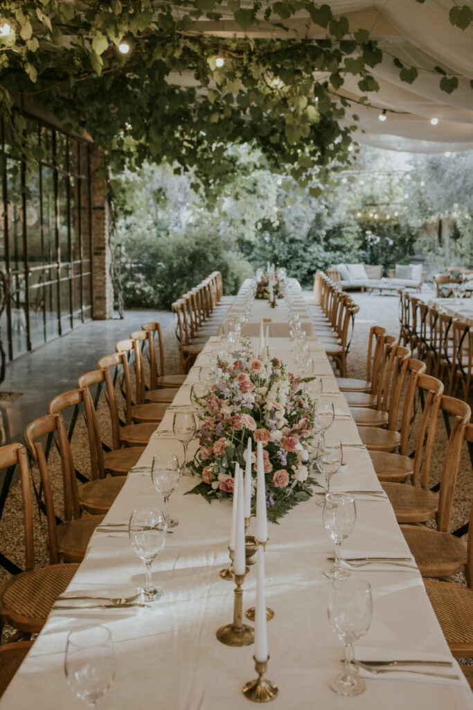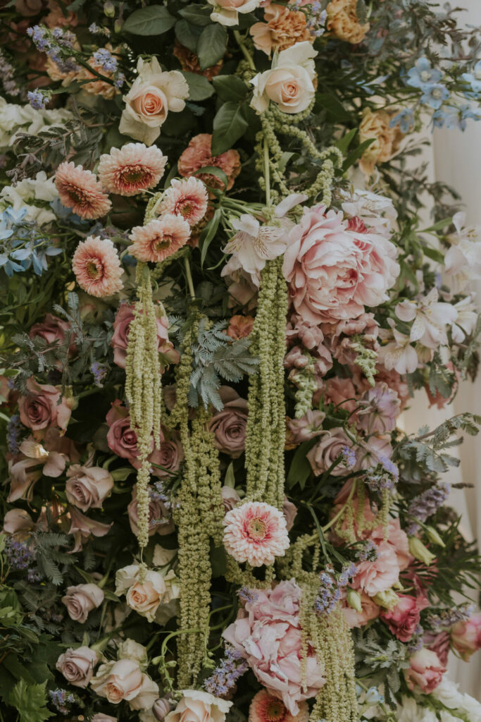 The floral installations were nothing short of breathtaking, lush, abundant, and artfully unstructured. Soft blush roses, delicate wildflowers, and cascading greenery created a rich tapestry of color and texture, mirroring the floral artistry of the Milli gown itself.