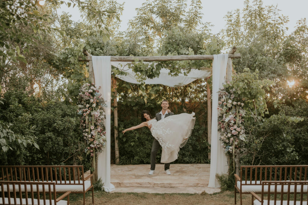 Set in the heart of Villa Nona, Noga’s wedding unfolded like a living composition where nature, light, and design existed in perfect harmony. Surrounded by warm stone, soft greenery, and golden sunlight filtering through the trees, the setting felt both intimate and effortlessly refined.
