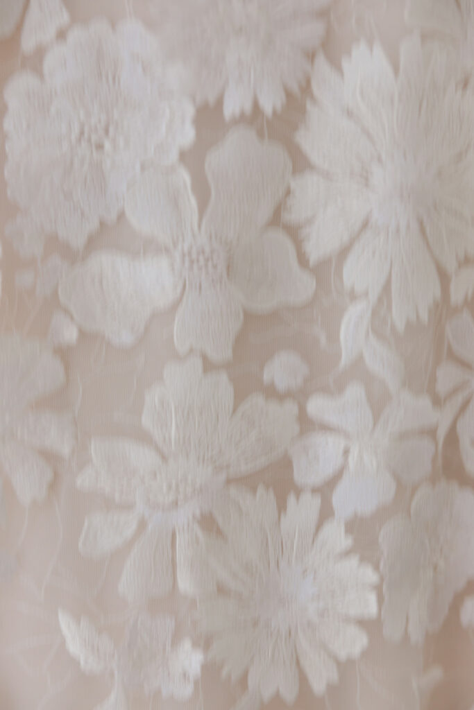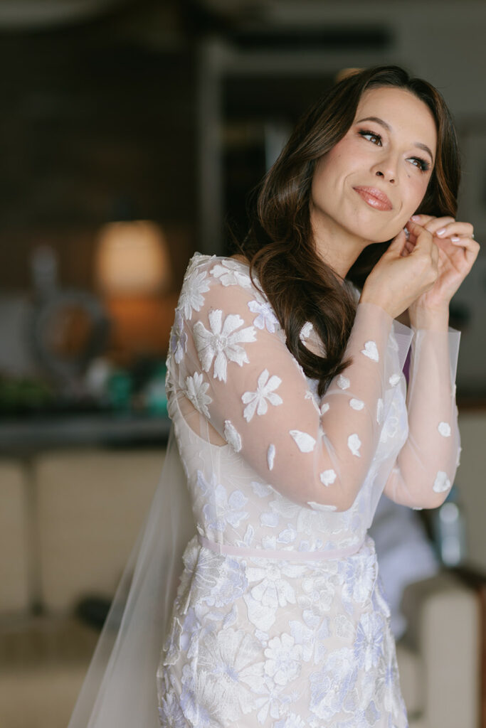 The softness of the island breeze, the golden light, the quiet elegance of the setting… all came together to enhance the delicate floral textures and sculpted silhouette of the Ness gown.