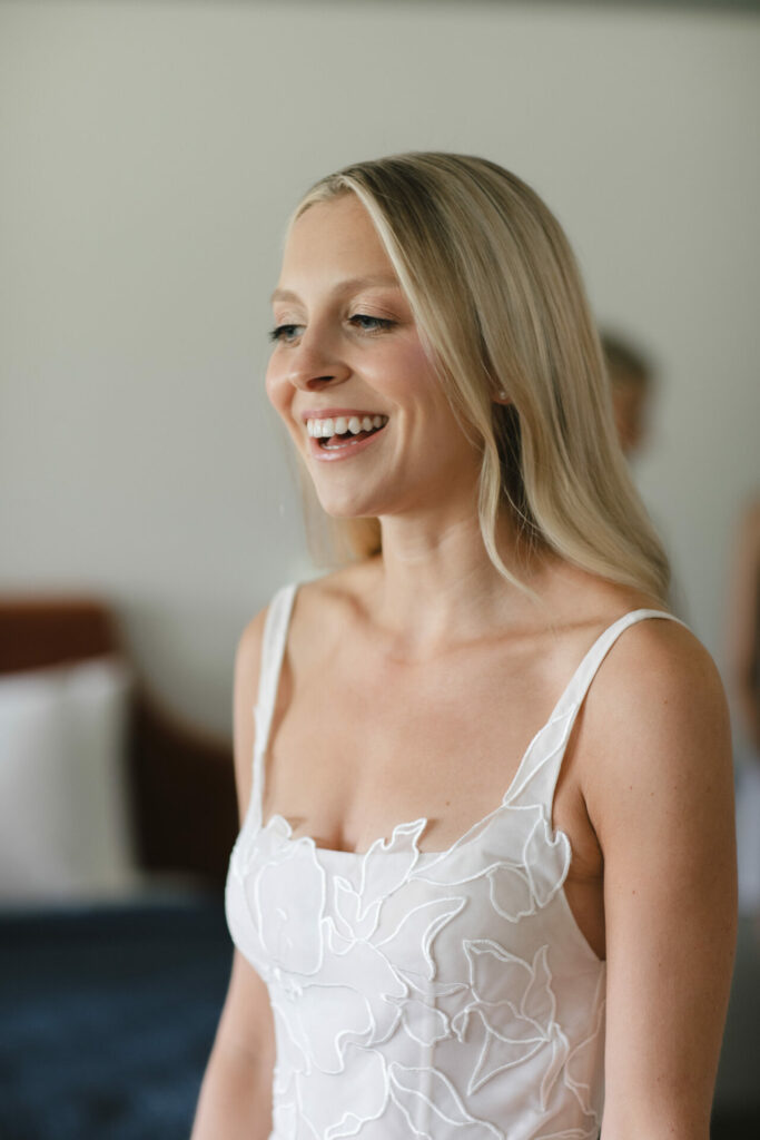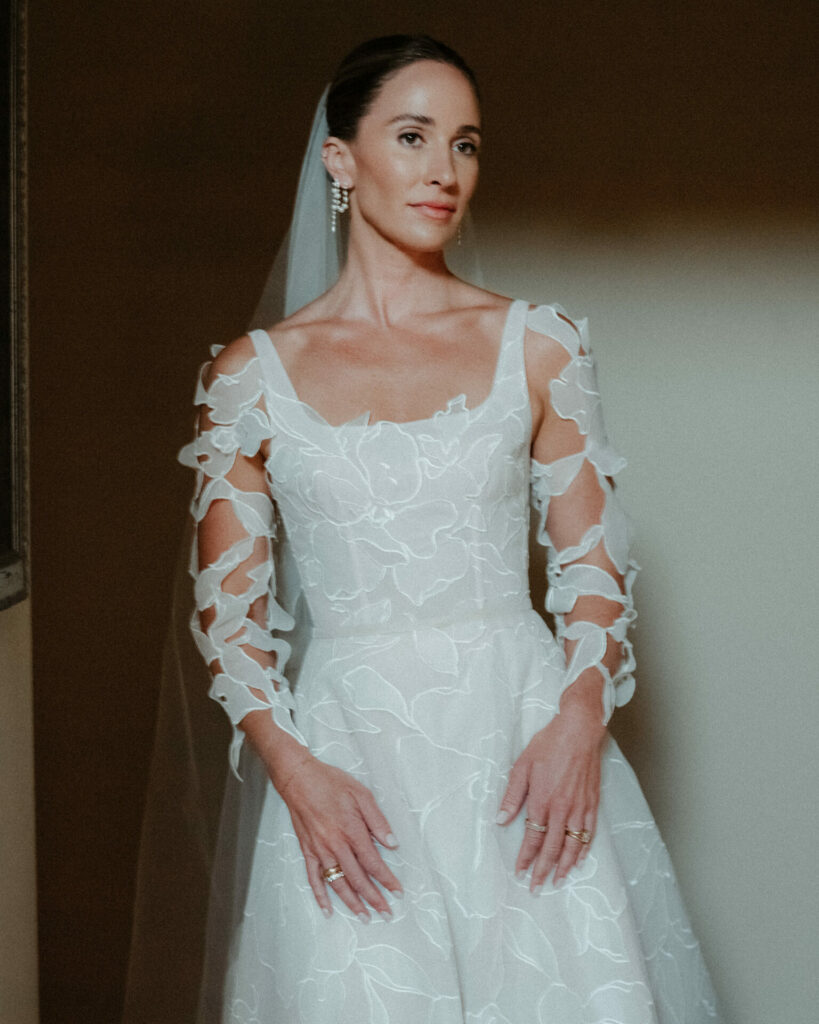 What makes Suma even more special are the delicate matching accessories. The gown is paired with detachable, weightless sleeves that add movement and fluidity to the look—perfect for a bride who loves to transition between ceremony and celebration.