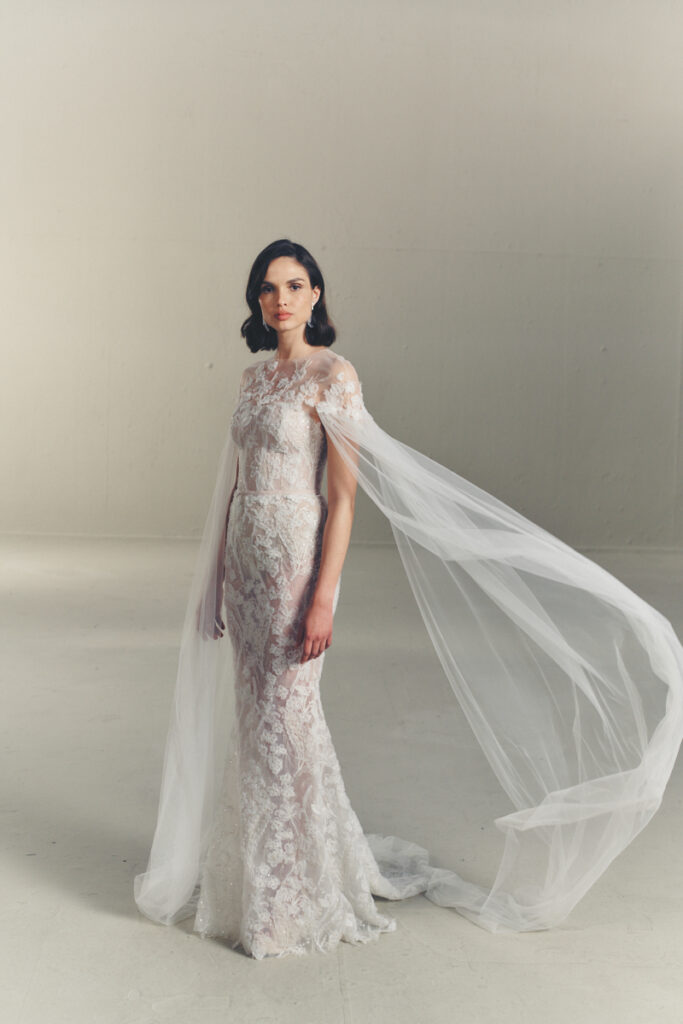 Make an unforgettable entrance with a Mira Zwillinger bridal cape. Designed for drama, elegance, and fluid motion, these pieces offer a regal alternative to the veil—flowing with every step, yet crafted to the same bespoke standards as your gown.