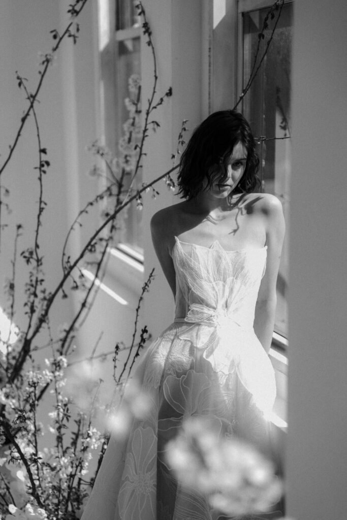 Mayra is for the bride drawn to poetic lightness, where every detail feels kissed by air. It’s a gown that feels like a secret garden in motion crafted for the romantic visionary who still wants to feel modern and strong.