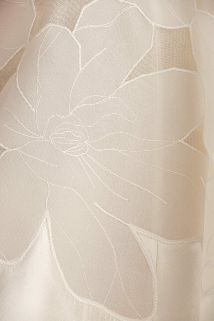 This collection captures that delicate tension between stillness and awakening. Sculptural silhouettes meet weightless layers, while intricate florals and textures seem to grow beyond the gown itself - unfolding, evolving, coming to life.
