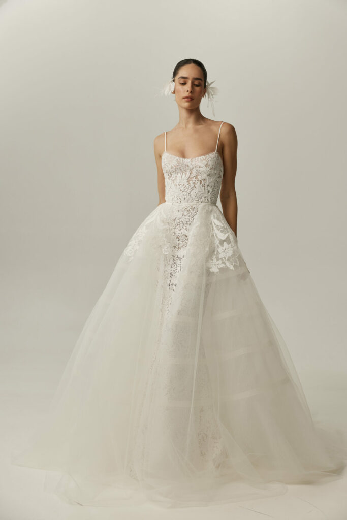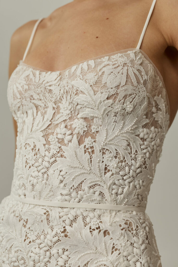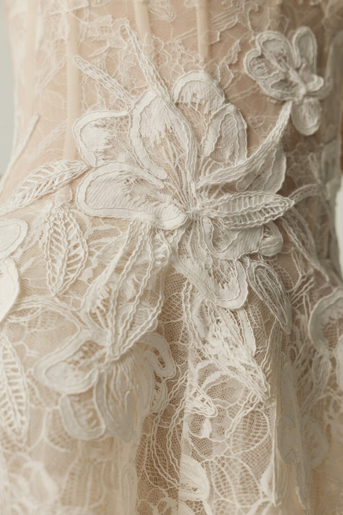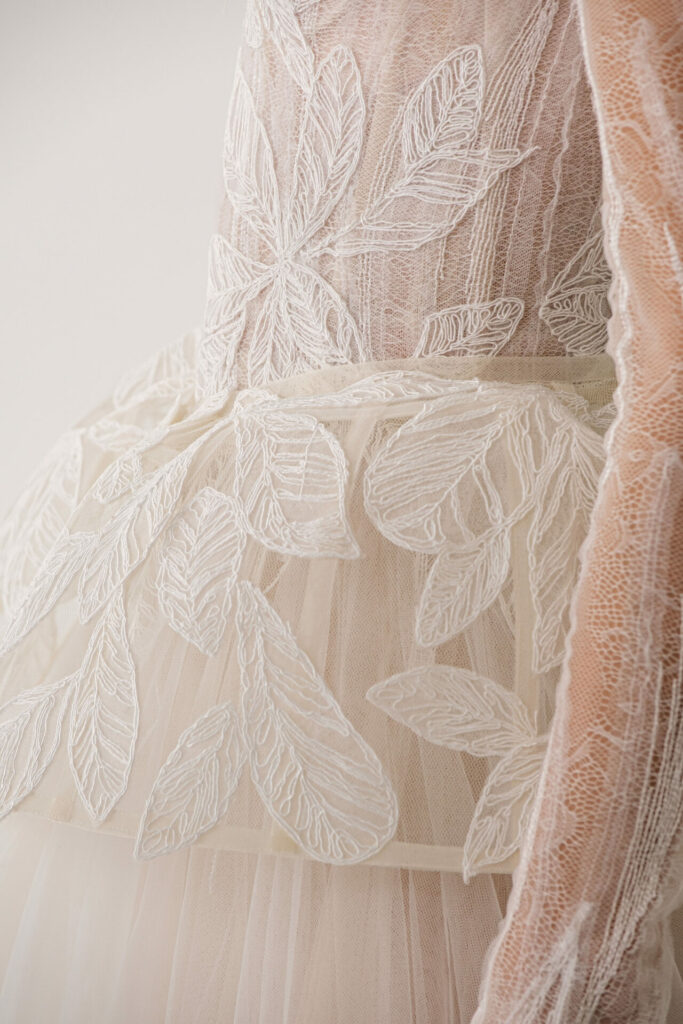 This meticulous process reflects Mira Zwillinger’s devotion to craftsmanship, where every detail is created in the atelier, and every gown becomes a true work of art.