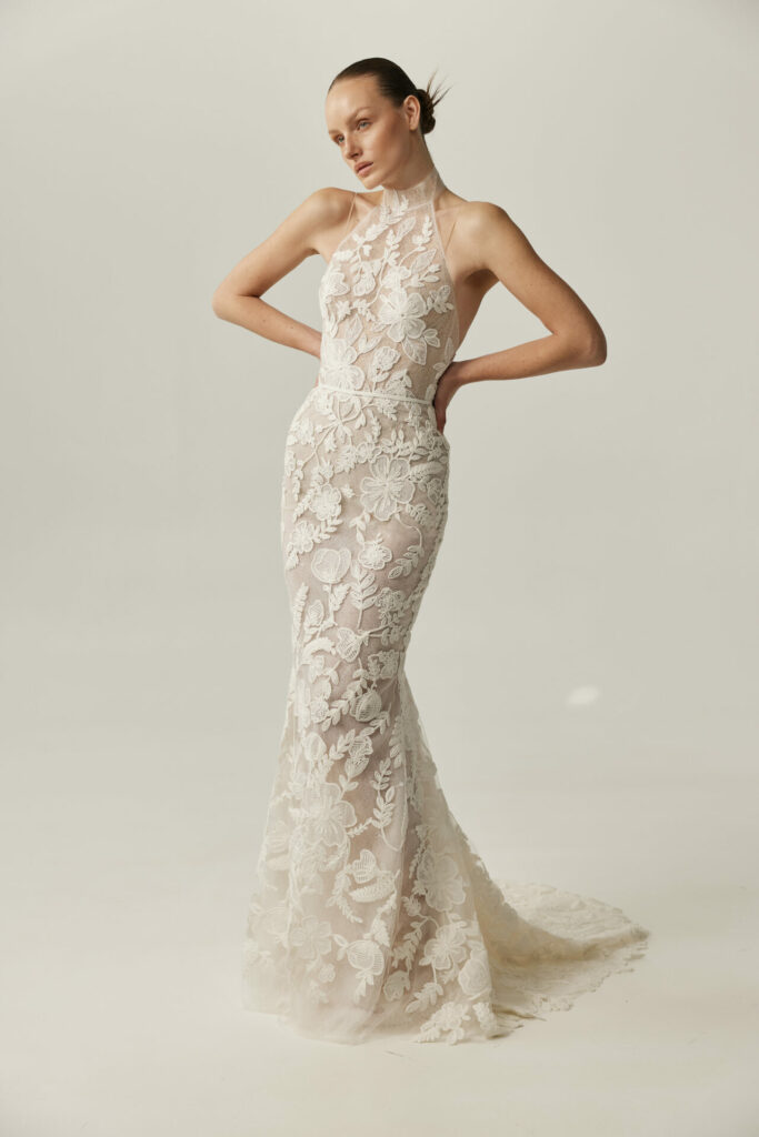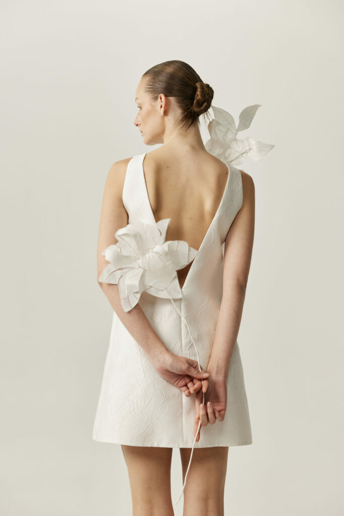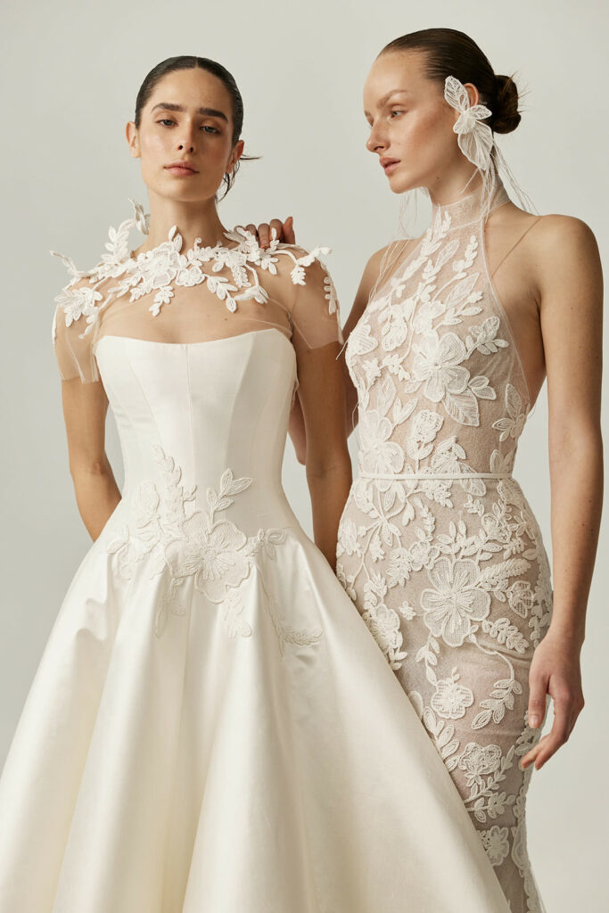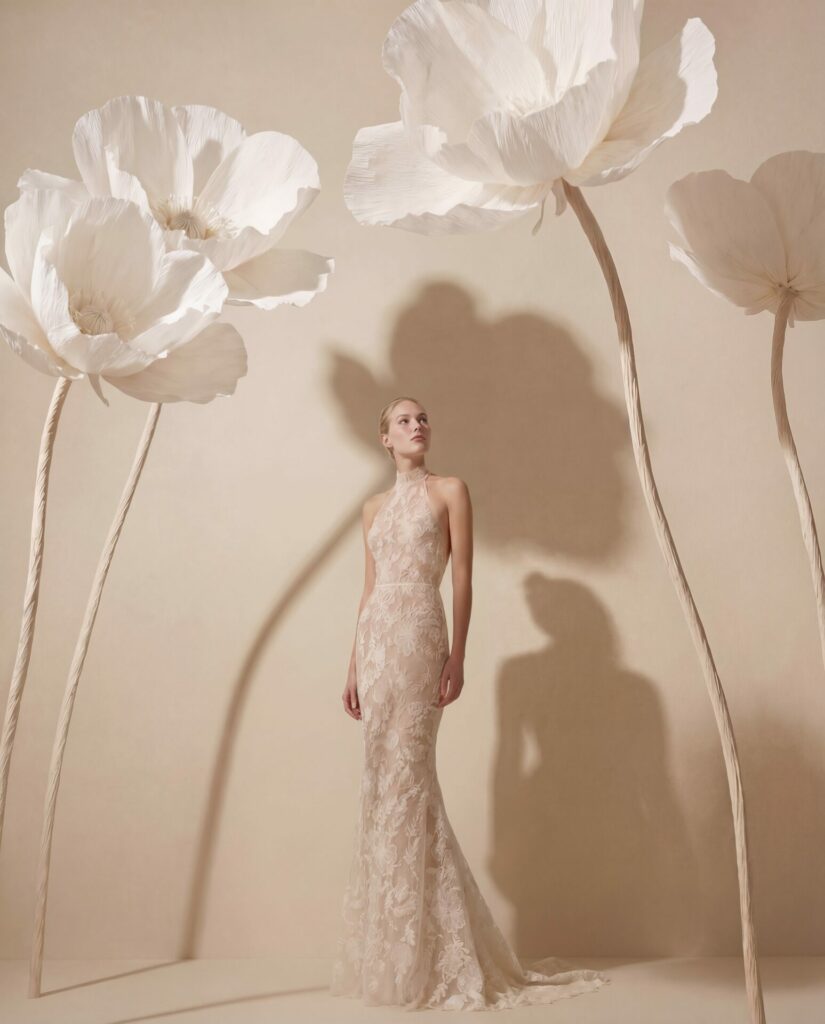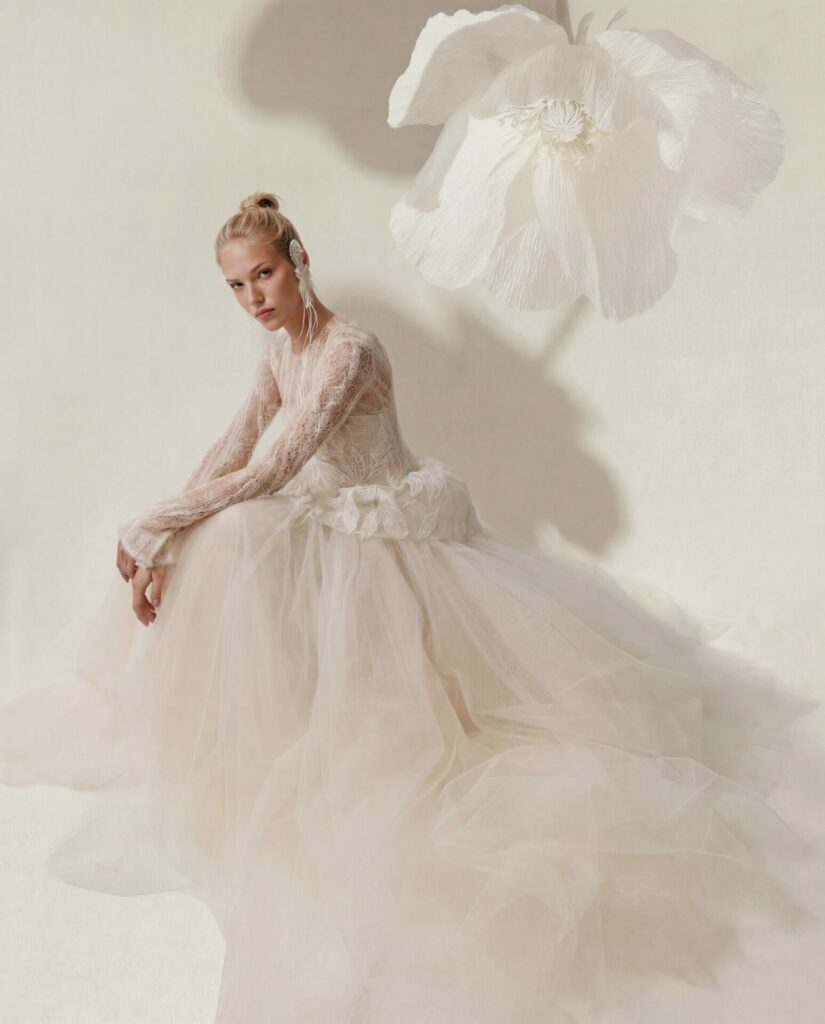 Complementing the gowns, a new world of accessories emerges, designed as a natural extension of each look. Ethereal veils mirror the movement of the florals, flowing seamlessly as if they are part of the gown itself, while sculptural capes add a sense of quiet drama and modern romance.