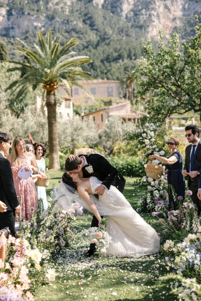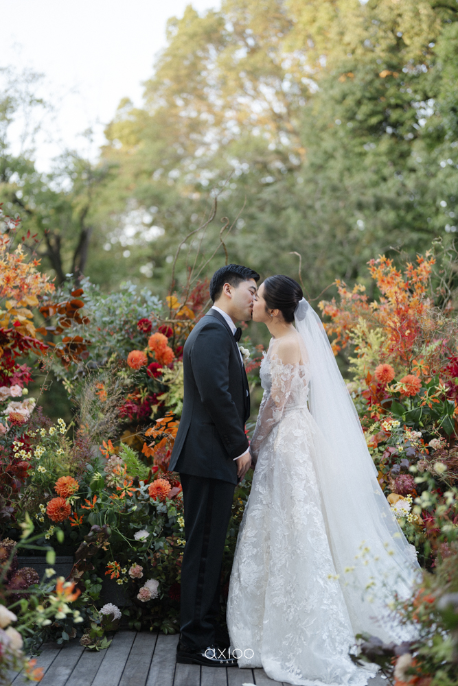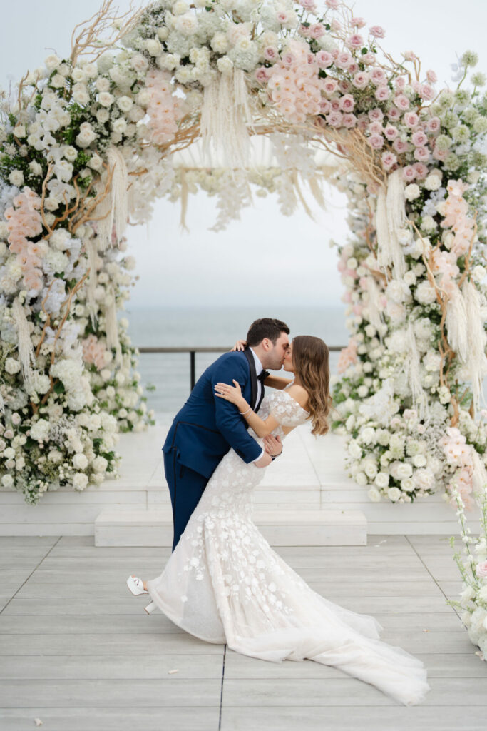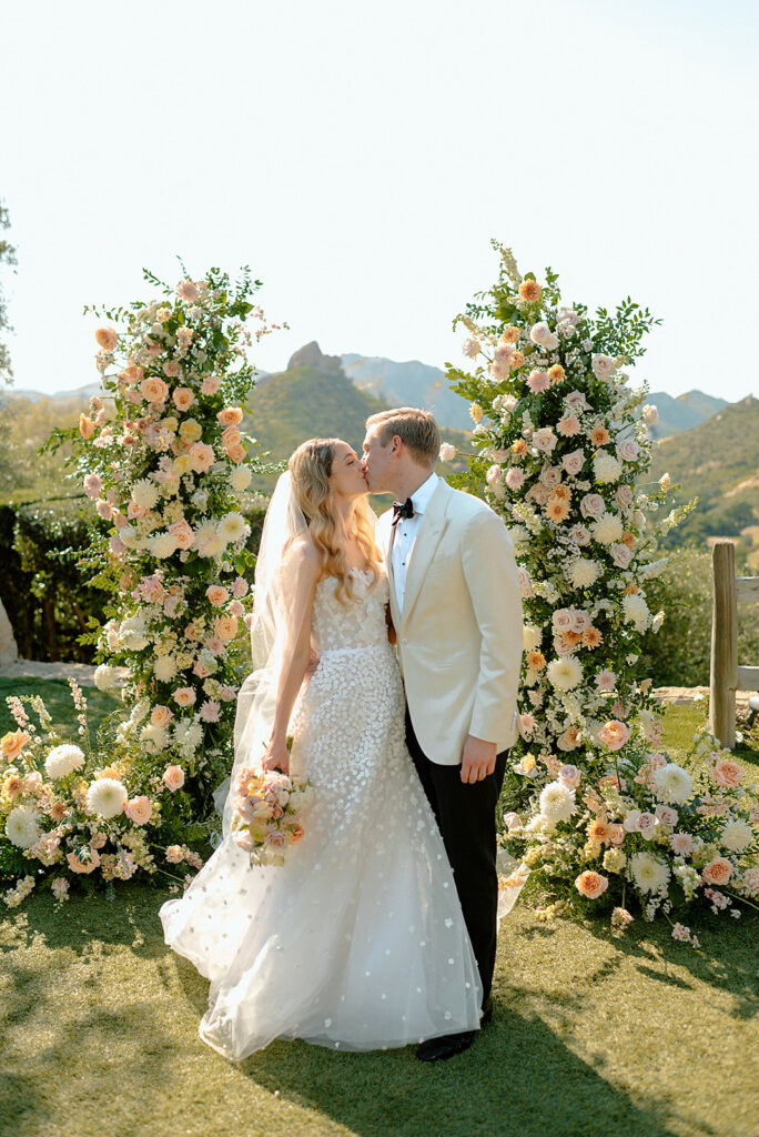 The classic wedding kiss never goes out of style.