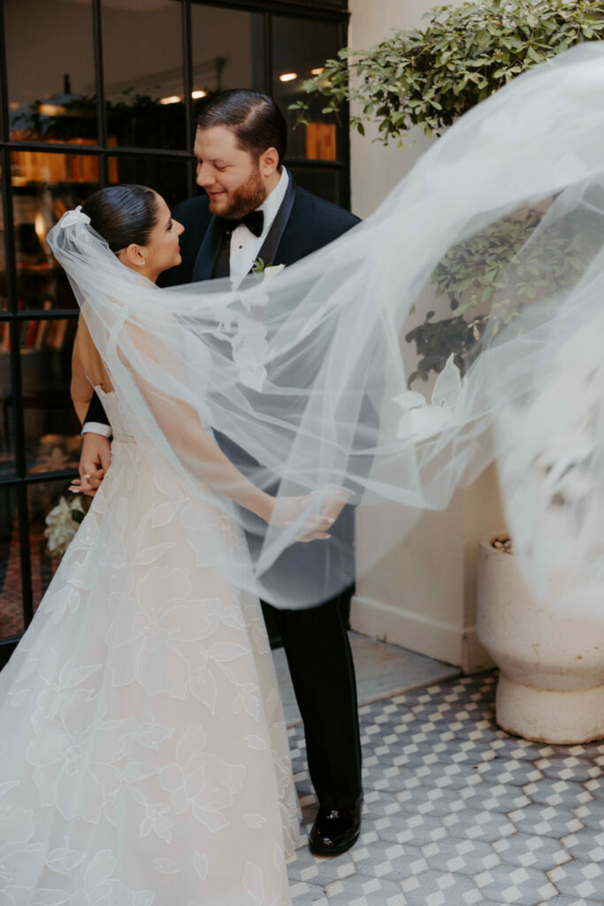 Few visuals feel as romantic as a veil floating around the couple.