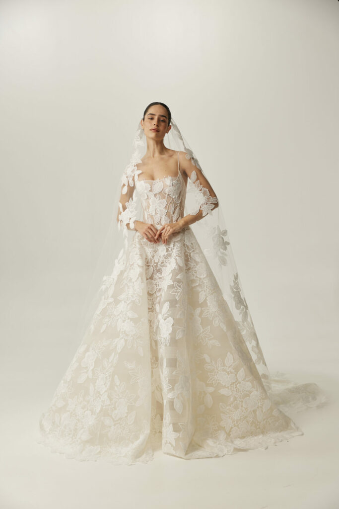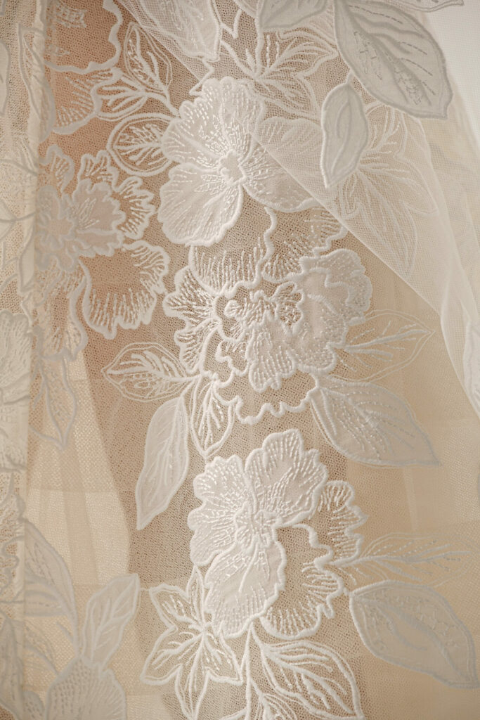 Each detail – every petal, every thread – is created to echo the gown’s artistry, resulting in a seamless, harmonious look. Together, gown and veil create a visual flow that feels complete, elevated, and deeply intentional.