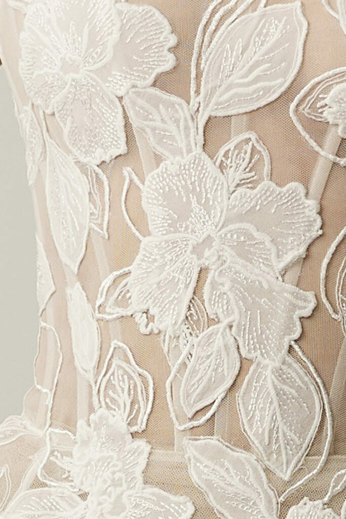 Sui elevates this beloved silhouette by introducing couture-level detail, handcrafted florals, and a deeply personal design approach – making it ideal for brides who want both timeless elegance and artistic individuality.