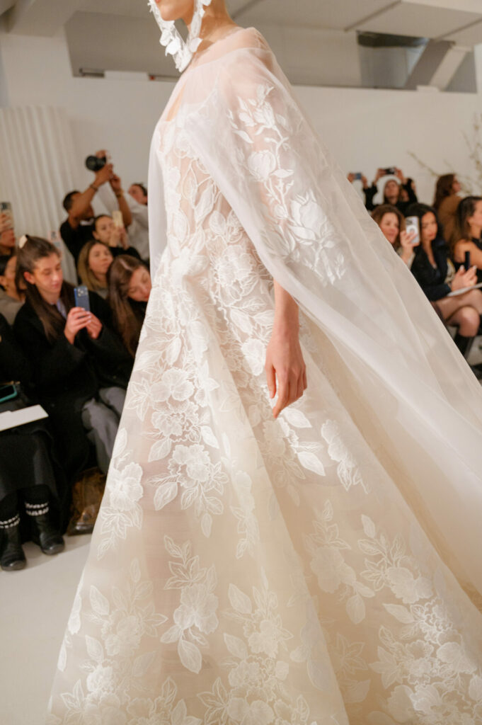 Just as every flower in our gowns is placed with intention, every print on the cape is part of a thoughtful composition. No two pieces are ever identical, making each bride’s look truly her own.
