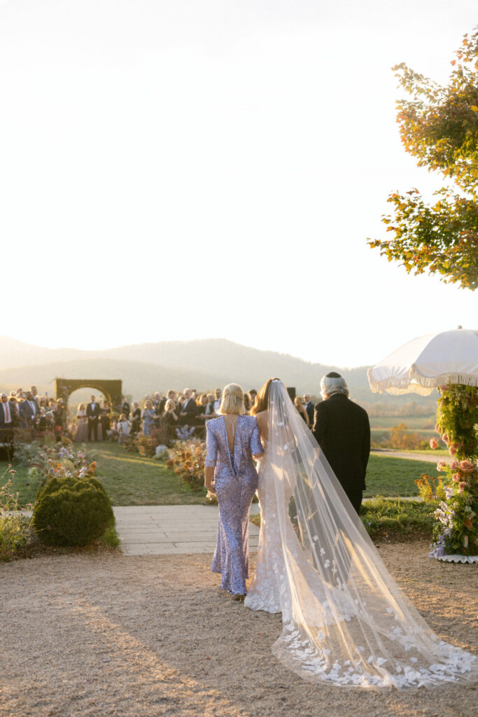 Cooler temperatures invite drama, in the best way. Luxurious fabrics like silk mikado, long illusion sleeves, and intricate embroidery can be worn in full comfort. There’s no need to compromise on coverage or layers. Mira Zwillinger brides often embrace voluminous skirts, hand-placed florals, and bespoke veils during the colder months, knowing they’ll stay perfectly cozy. A cold-season wedding gives your couture gown the full stage it deserves.