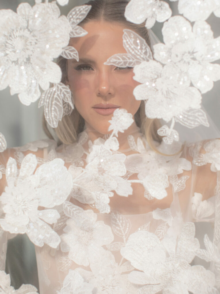 Autumn and winter offer a visual richness that echoes the heart of Mira’s design language, depth, elegance, and timelessness. Think: a bride walking through an amber forest or gliding across a snow-dusted marble aisle. These seasons naturally complement gowns adorned with hand-placed petals, sculptural silhouettes, and ethereal textures. The entire scene feels like a painting come to life.